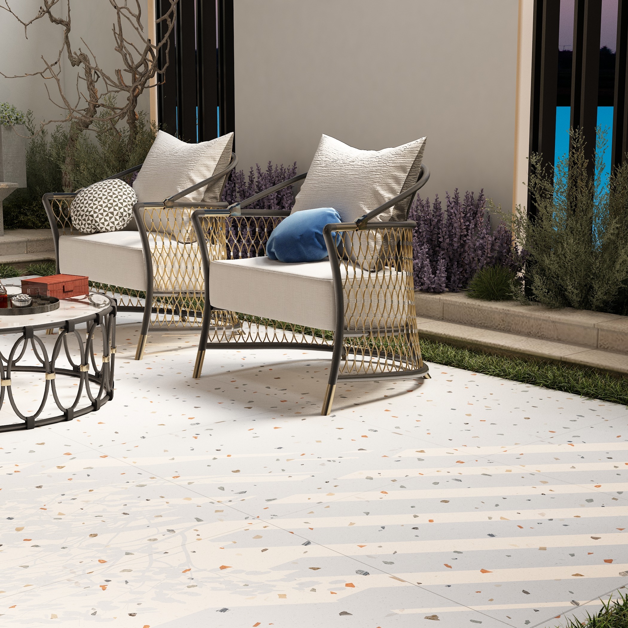 طرح موزاییکی، بافتی ظریف و منظم روی سطح ایجاد میکند که باعث افزایش جذابیت بصری میشود. رنگ سفید، فضا را بزرگتر و روشنتر نشان میدهد و بهراحتی با انواع دکوراسیون و متریالهای مختلف هماهنگ میشود.