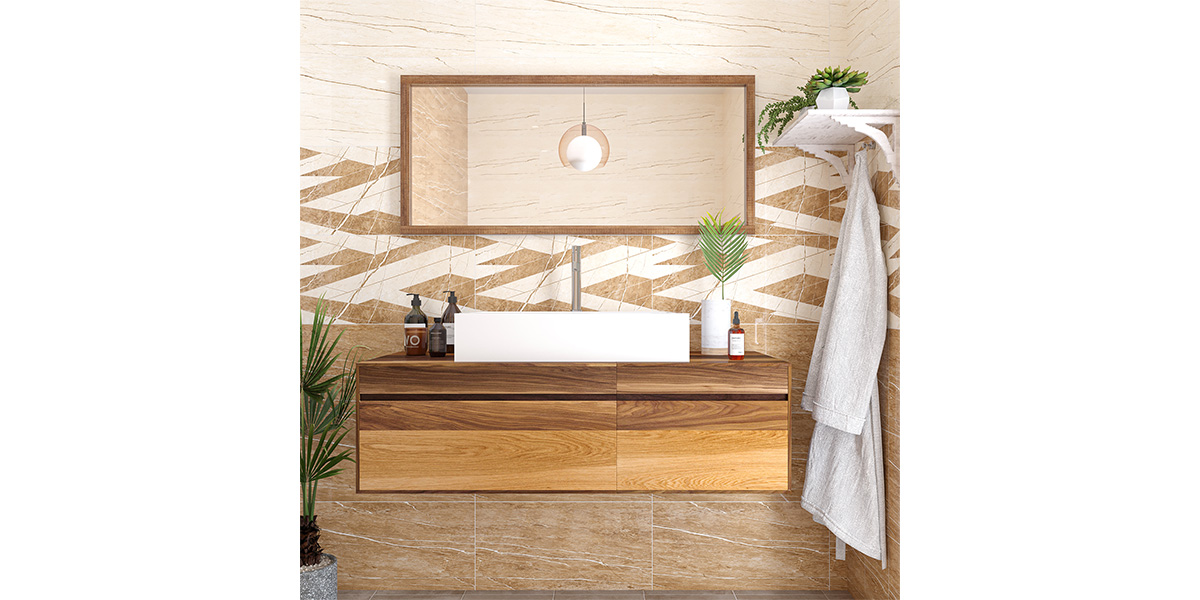 ست سرامیک دیواری براق کرم و نسکافه ای 30*60 میرا ، گزینهای خاص برای دیوارهای سرویس بهداشتی و حمام است. این ست با ترکیب رنگهای گرم و ملایم کرم و نسکافهای، حس آرامش، ظرافت و پاکی را به فضا القا میکند. پانچ دکور هماهنگ، جلوهای متفاوت و لوکس به طراحی نهایی میبخشد.