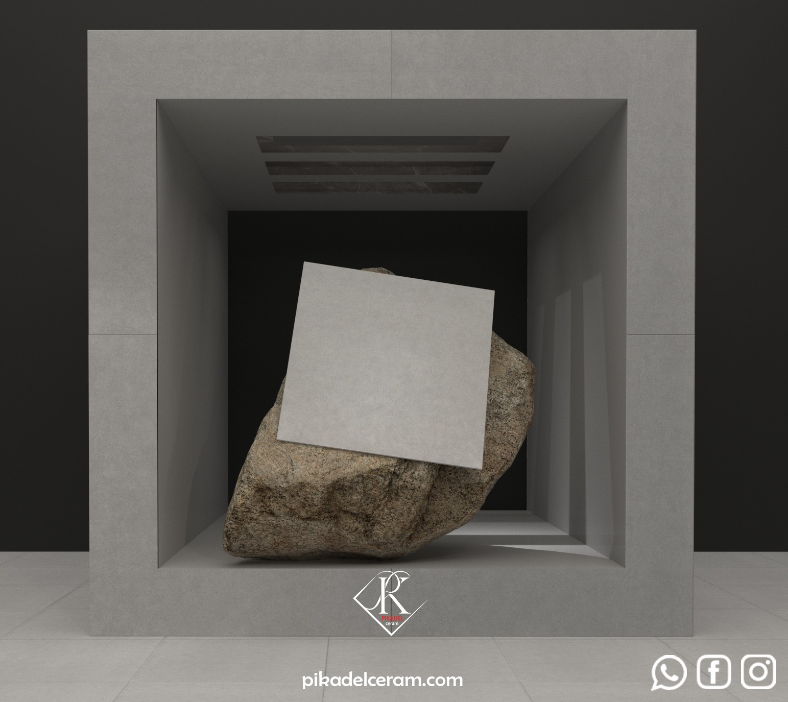 مدل مات ریگل خاکستری در کنار دیوارهای سفید و مبلمان ساده، فضایی آرام و مدرن ایجاد میکند. نورپردازی خطی و لامپهای هالوژنی جلوهای خاص به این سرامیک میبخشد.