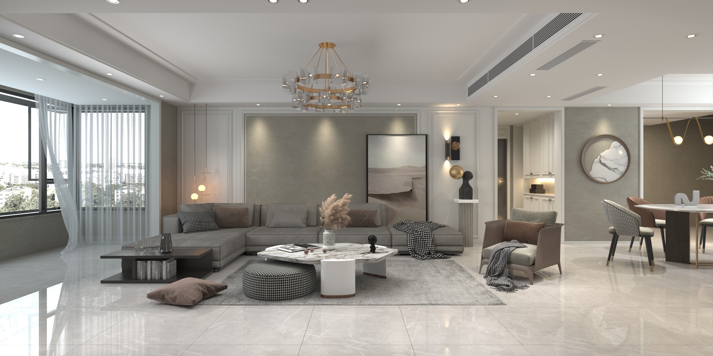 این ترکیب رنگ جلوهای مدرن به فضا میدهد. همچنین بهراحتی با بسیاری از رنگهای دکوراسیون هماهنگ میشود.
