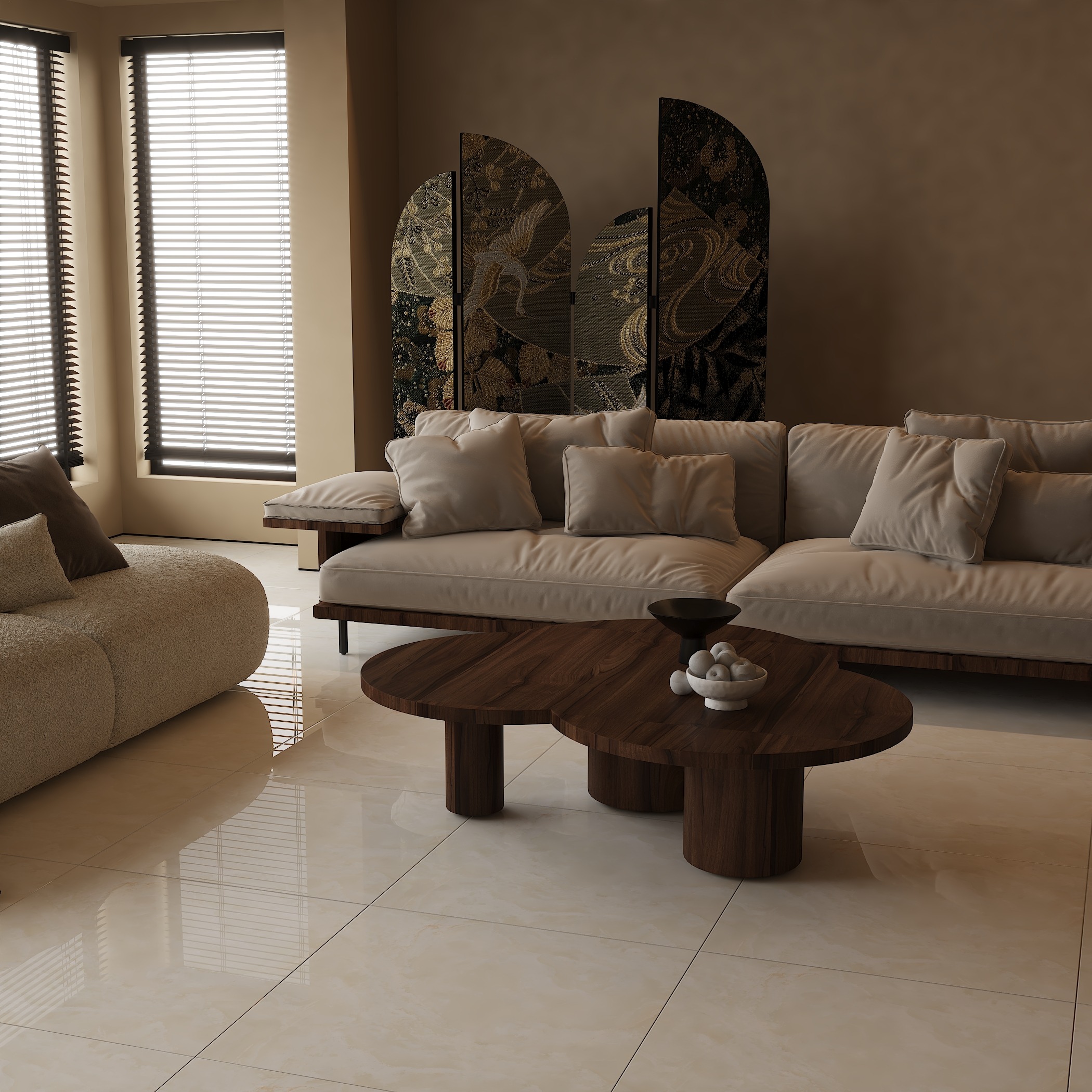 رنگ کرم فضایی آرام و دلنشین ایجاد می‌کند و با رنگ‌هایی مانند سفید، قهوه‌ای، چوبی و خاکستری به‌خوبی ترکیب می‌شود.
